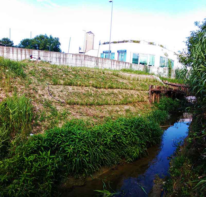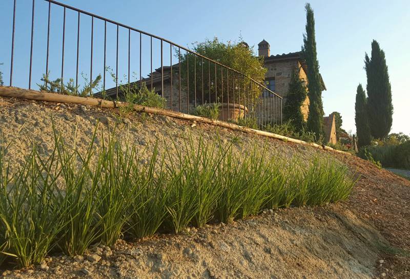 Lavoro svolto da ditta "Le Criniere" con tecnologia vetisoxx (soxx piantumato con vetiver)