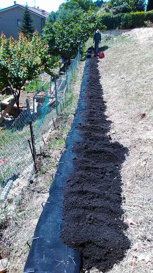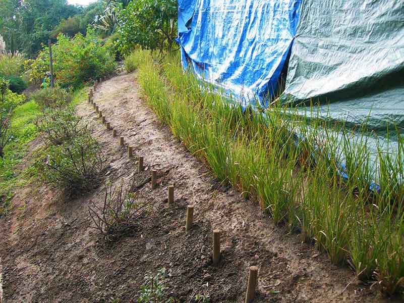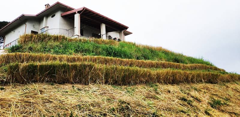 Consolidamento con tecnica mista piante di vetiver e juta al fine di evitare lo scivolamento del sedimento superficiale.