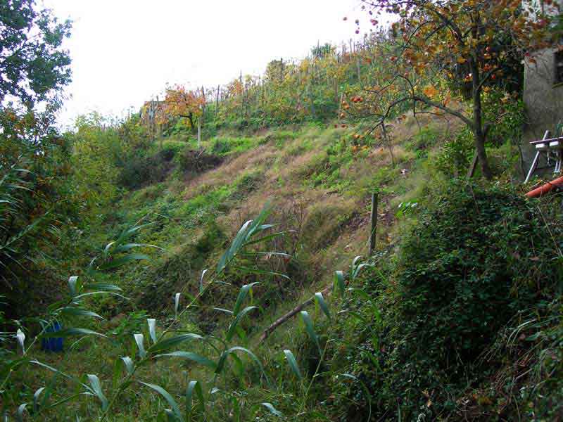 Il movimento franoso al piede del vigneto aveva innescato una serie di stacchi superiori il tutto è stato bloccato con il sistema vetiver.