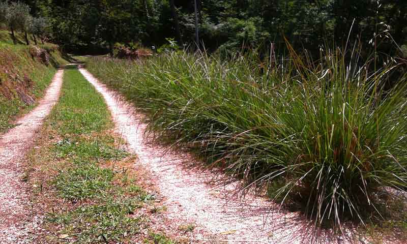 Lo scivolamento del terreno sottostante aveva compromesso in un punto la viabilità della strada. Con la piantumazione di vetiver è stato bloccato il fenomeno e la strada è rimasta transitabile.